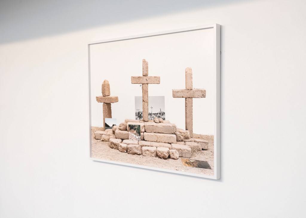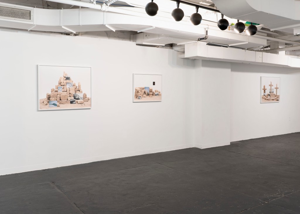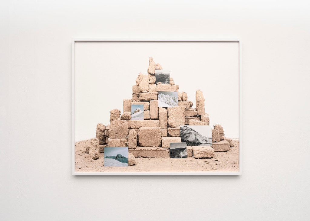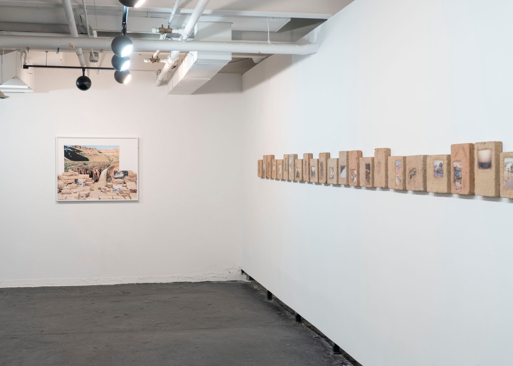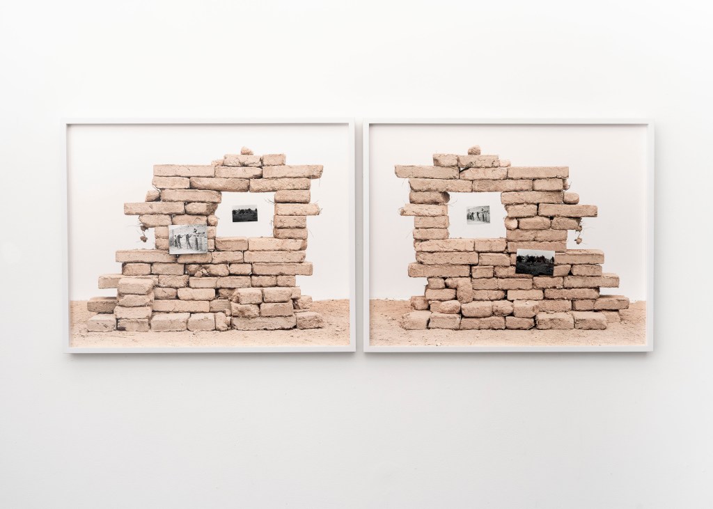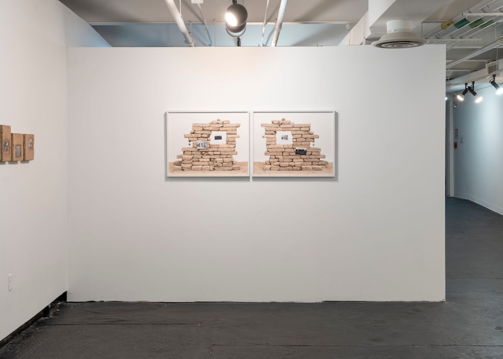 I also utilize archival-sourced images and hand-make adobe bricks to construct cultural, religious, and landscape-centered compositions related to my Mexican heritage. Archived and personal photographs are meticulously placed onto the adobe bricks and photographed with a medium-format film camera. Including sourced historical photographs helps me establish my internal processing in a way that couldn’t be expressed within a traditional photograph. The compositions become self-portraits as reflections of myself begin to form out of the constructed monuments. The two bodies of work clash to provide an experience reflective of labor, photographic deep time, and cross-cultural shared experiences.